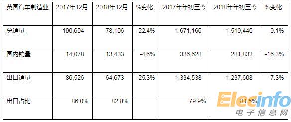 英國汽車制造(2018年12月和全年數(shù)據(jù))