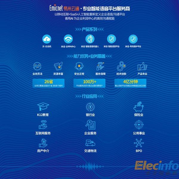 專業(yè)智能語音平臺服務(wù)商 -- 易米云通從創(chuàng)立之初就意識到軟件定義語音 (Software-Defined Voice, SDV) 的重要性,隨著云計(jì)算和AI的發(fā)展,易米云通為企業(yè)用戶帶來了無需硬件部署,即開即用的米話系列專業(yè)云通信服務(wù),并按照 SaaS 方式提供隨時按需使用。截至目前,易米云通的服務(wù)已覆蓋全國26省、300+城市、發(fā)展了100萬+企業(yè)級付費(fèi)用戶,平臺承載語音話務(wù)量已達(dá)每月近4億分鐘,服務(wù)了包括銀行保險(xiǎn)、公用事業(yè)、K12教育、互聯(lián)網(wǎng)服務(wù)、企業(yè)服務(wù)和交通物流等在內(nèi)的眾多行業(yè)頭部客戶。