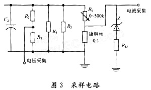 采樣電路為電壓采集與電流采集電路,采樣電路如圖3所示。其中P6.0,P6.1為MSP430芯片的采樣通道,P6.0為電壓采集,P6.1為電流采集。
